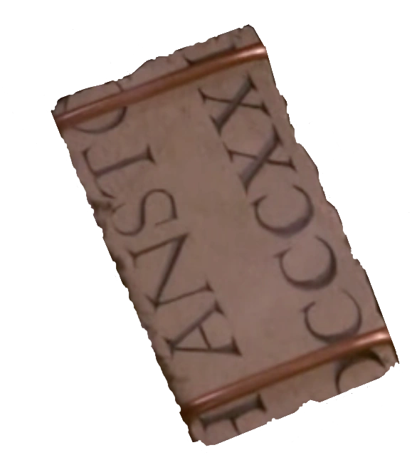 This is a chunk of masonry from the British House of Commons. During the World War II Blitz, part of the House was demolished. This piece from the building's rubble absorbed "the concussive force of the entire German Luftwaffe". Artie refers to it as an "artifact nuclear device".